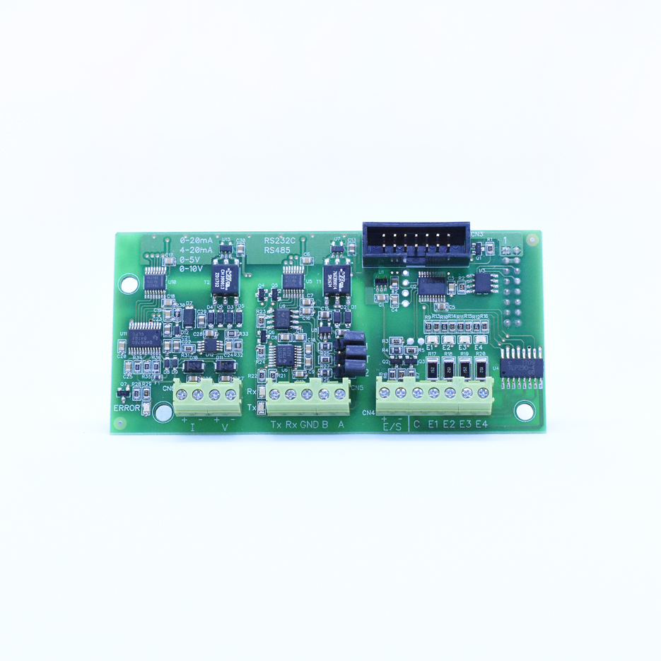 Módulo de Expansión con interfaz RS485/RS232 aislada y salida analógica de corriente/tensión para KAIO FULL. El mismo incluye: 1) Puerto aislado RS232 / RS485 a 2 hilos, con velocidad y databits configurables hasta 115 kbauds. Utilizado para soporte de protocolo MODBUS serial RTU/ASCII. 2) Salida analógica de corriente (0-20/4-20mA) o tensión (0-5/1-5/0-10/2-10VDC). 3) Expansión para 1000 memorias o buffer de pesadas. 4) Interfaz para conexión de display OLED. 5) 4 entradas digitales aisladas. 6) Lazo de corriente digital (conexión a display remoto DR4U o placa de cortes PC3R).