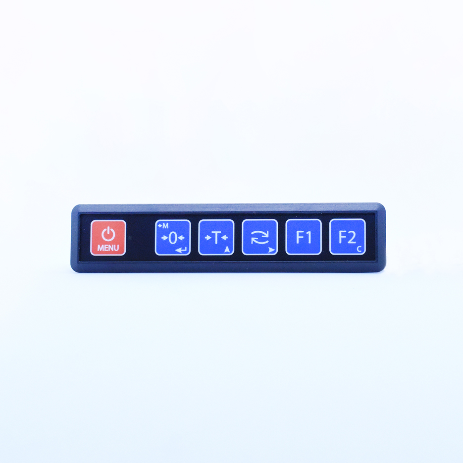 Teclado de 6 pulsadores, incluye bastidor plástico para montaje en gabinete y cable de intercanexion a indicador de peso . Teclas: POWER/MENU, CERO, TARA, SELECT, F1, F2.