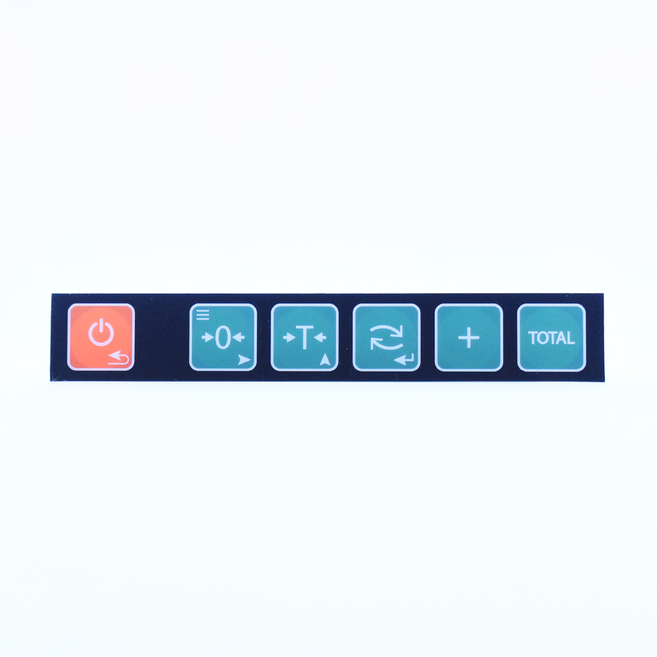 Etiqueta autoadhesiva de PVC. Teclas: POWER/MENU, CERO, TARA, SELECT, +, TOTAL.