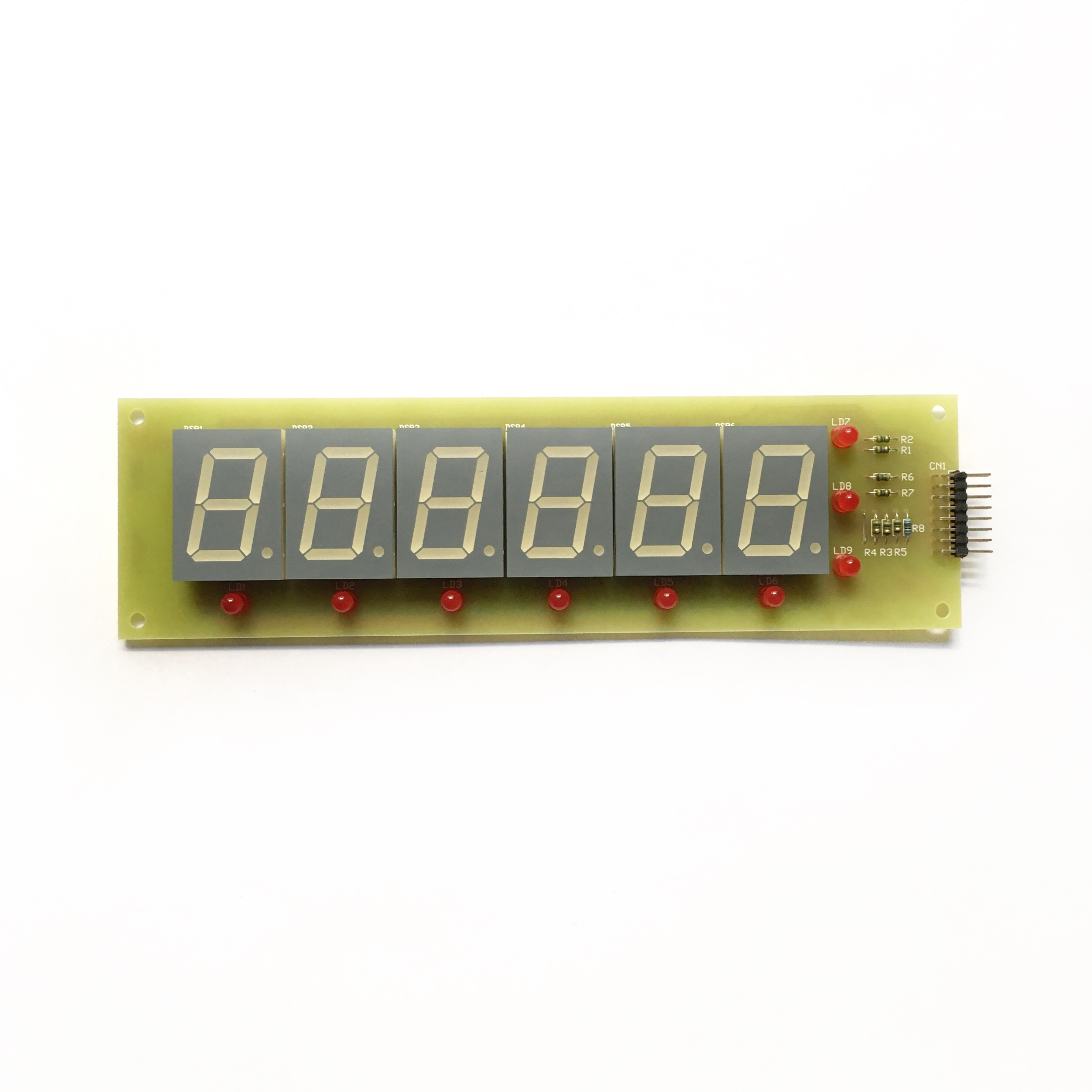 Display indicador de 6 dígitos LED 7-Segmentos de una pulgadas de altura mas nueve indicadores LED de 5mm de diámetro, ambos de color rojo.