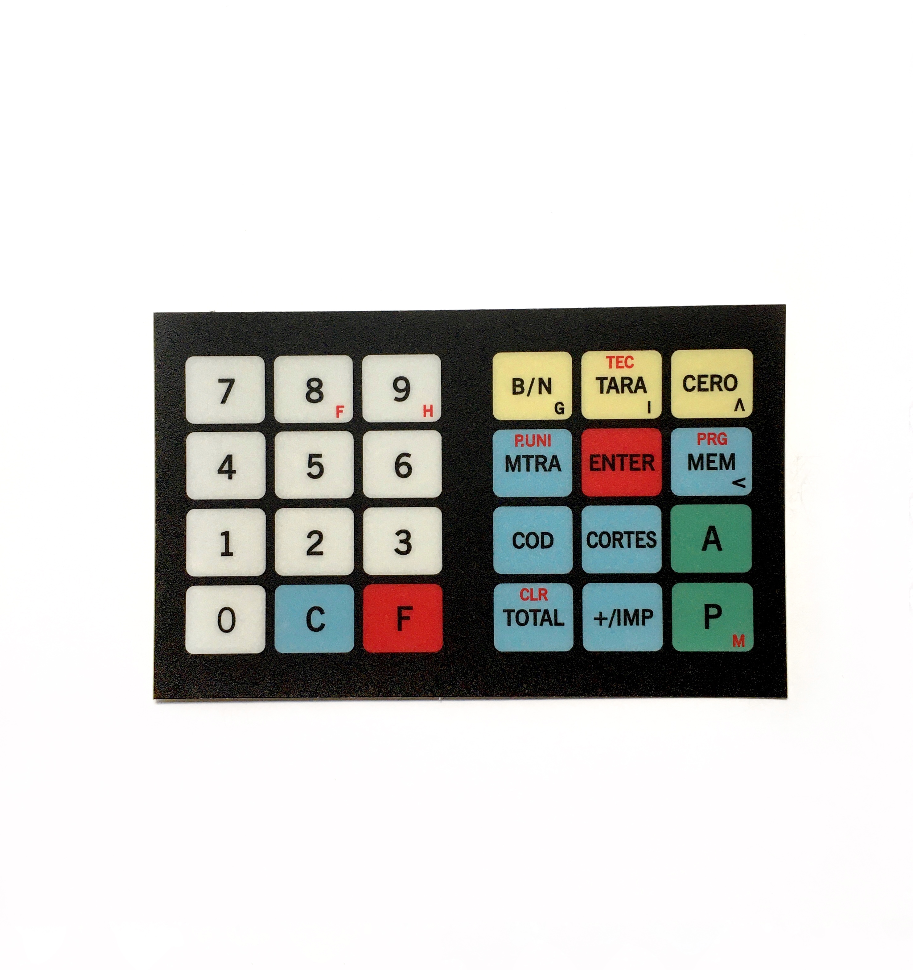Etiqueta autoadhesiva de policarbonato. Para ser utilizado con teclado de bastidor metálico con 24 pulsadores pulsadores, versión uso general.